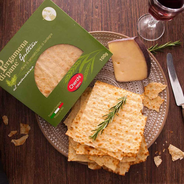Discover the authentic taste of Cherchi’s Pergamena di Pane, the traditional Sardinian parchment cracker. Light, crispy, and made with just a few simple ingredients, it's the perfect companion for any meal. Explore our classic Guttiau, as well as delicious varieties with oregano, rosemary, and truffle!