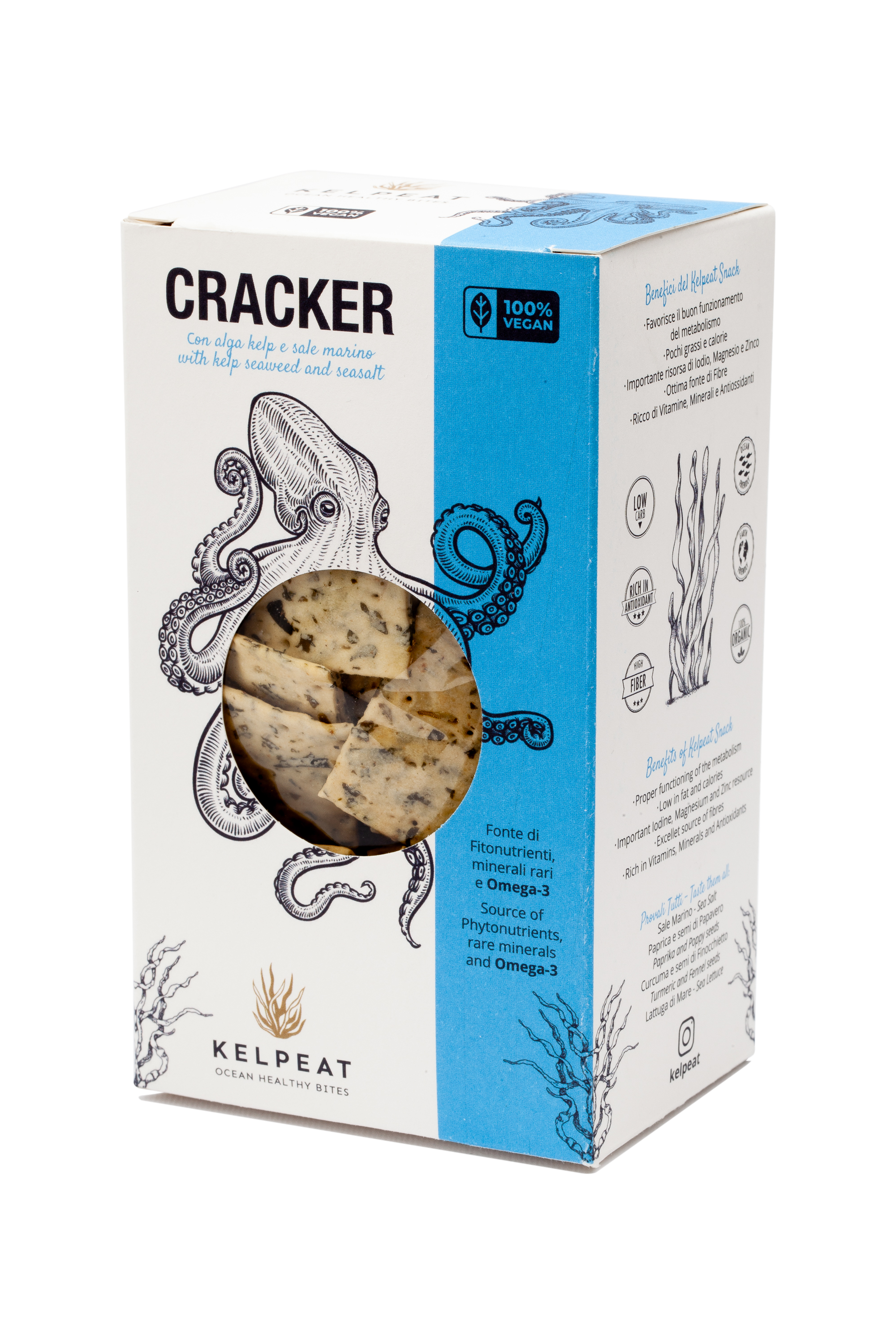 Kelpeat's Kelp Crackers are premium, artisanal seaweed crackers crafted in Italy using sustainably farmed sugar kelp, Italian wheat flour, and Greek extra virgin olive oil. Ultra-thin and naturally crunchy, they deliver a clean, savory umami flavor inspired by the sea and the Mediterranean. Balanced, flavorful, and plant-based, Kelp Crackers are designed for modern snacking, pairing effortlessly with both classic and contemporary dishes.