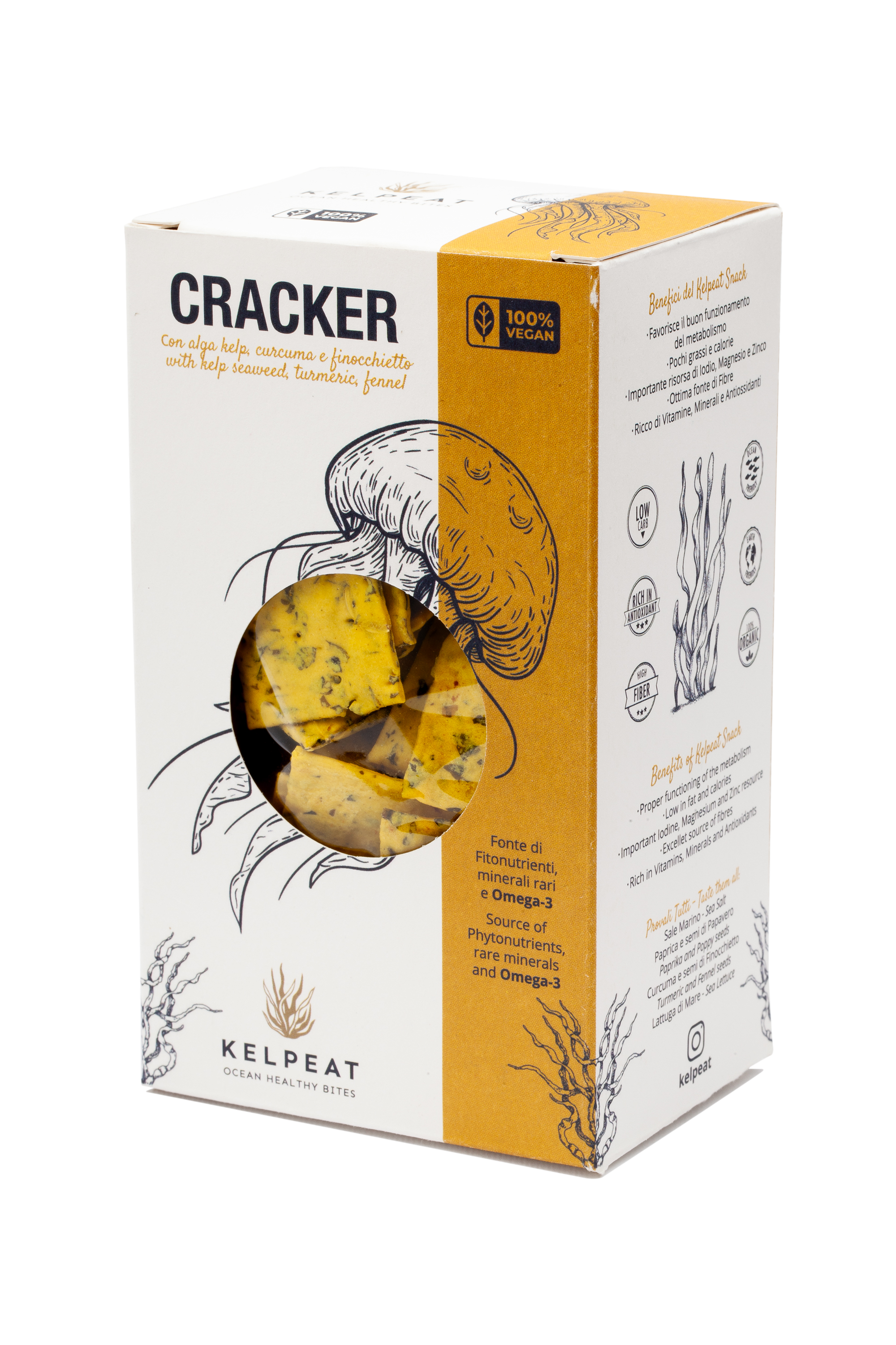 KelpEat’s signature range of artisan seaweed crackers and flours is baked and processed in Italy using carefully selected natural ingredients. From elegant square crackers flavored with emphasizing herbs and spices to gluten-free Wasa-style crispbreads and pure kelp flour, each product reflects a balance of taste, nutrition, and responsible sourcing.