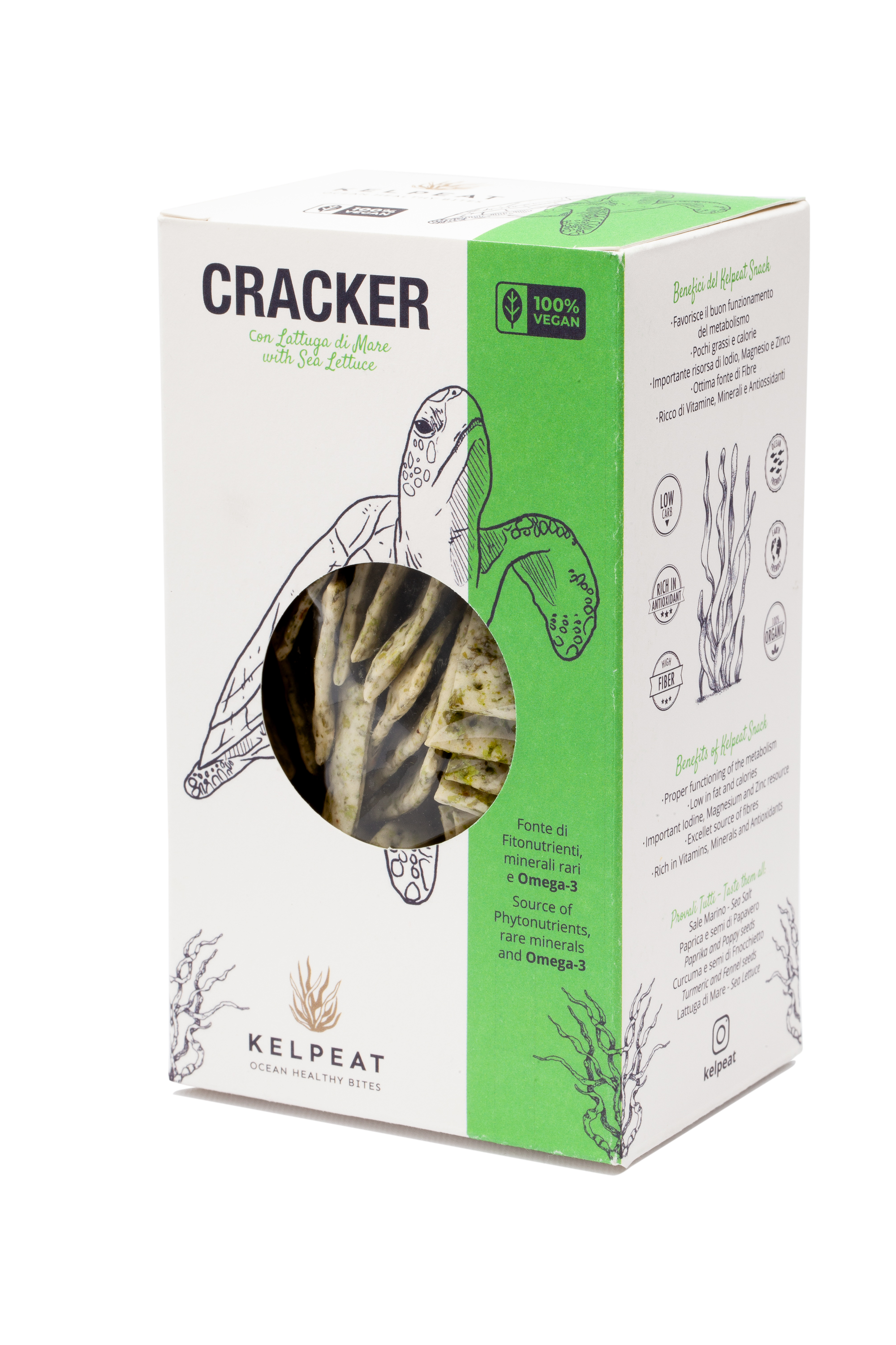 KelpEat’s Ulva Crackers are premium, artisanal seaweed crackers crafted in Italy using sustainably farmed sea lettuce (Ulva fenestrata) from Portuguese waters, Italian wheat flour, and Greek extra virgin olive oil. Ultra-thin and delicately crunchy, they deliver a fresh, mild umami flavor with subtle marine notes, inspired by the purity of the ocean and refined Mediterranean simplicity.
