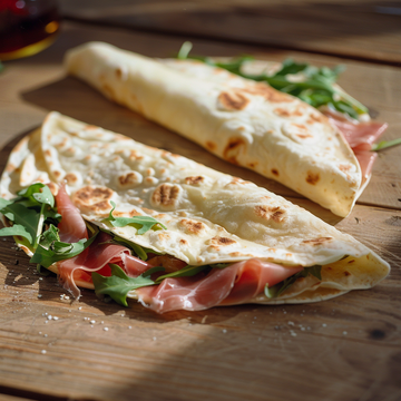 Experience the delicate flavors of the Rimini Riviera with Piadina Oil, a lighter, ultra-thin version of the traditional piadina. Known as "sfogliata", this variant is perfect for creating soft, wrap-friendly meals. Crafted from 100% natural ingredients, it’s a healthier choice—vegan, with no added sugars, cholesterol, or preservatives. The thin, layered texture makes it versatile for any dish, whether you’re enjoying a savory sandwich or a light snack.